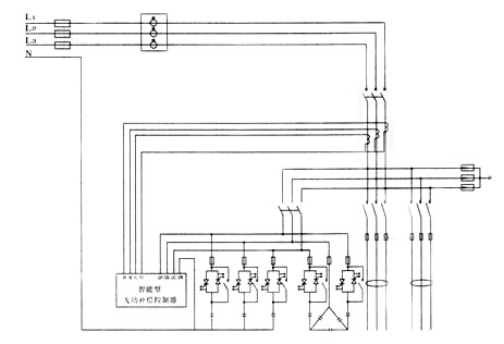 该装置以智能型无功补偿控制器为核心,采用无功功率与电压控制策略,使无功功率得到**化补偿,**化节约电能;该装置采用了功率模块与交流接触器联合运行的方式,既采用了功率模块零电压投入、零电流切除的优点又发挥了交流接触器能耗小、无谐波污染的优势;该装置采用共补与分补相结合的运行方式,使每相无功功率都得到**补偿。 三、主电路方案图