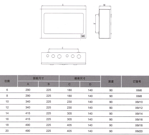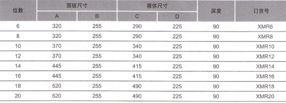 XM(R)配电箱应用示例 XM(R)产品在底箱与面板均焊接有标准接地螺栓,**匹配户内配电箱为XM系列10回路暗装箱,内部安装断路器。