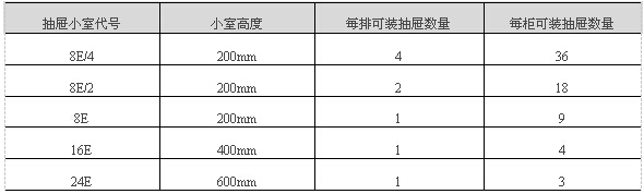 8E/4抽屉为4个组成一个8E安装单元,8E/2抽屉为2个组成一个8E/安装单元,或2个8E/4抽屉+1个8E/2抽屉组合。